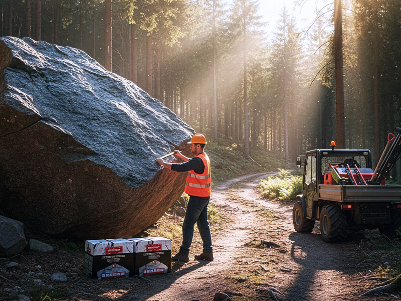 Überdimensionale Steine oder Felsen können im Wald schnell zu einer Gefahr werden – sei es für Fahrzeuge, Maschinen, Spaziergänger oder für die sichere Bewirtschaftung des Geländes. Mit BETONAMIT®, dem zuverlässigen und sprengstofffreien Quellsprengmittel, lassen sich solche Hindernisse einfach, sicher und kontrolliert entfernen. Durch gezielte Bohrungen und das Einfüllen von BETONAMIT® bricht der Stein innerhalb weniger Stunden von selbst – ganz ohne Erschütterungen, Lärm oder aufwendige Absperrungen. Ideal für alle, die im Forst arbeiten und eine effiziente, sichere und kostengünstige Lösung für fest sitzende Felsen benötigen.